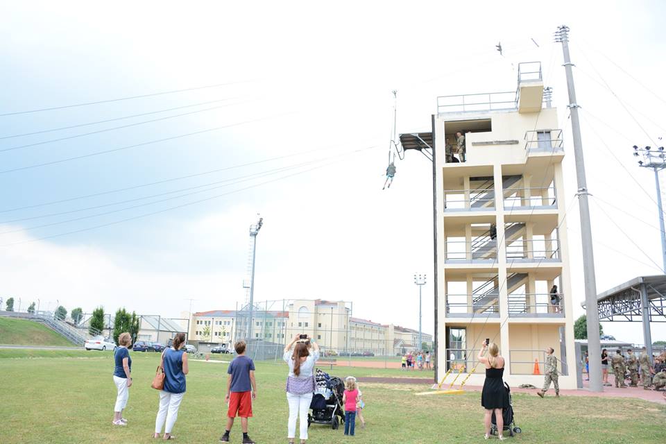On Thursday June 29th 2017 the battalion relaxed with a family fun day with kids jumping from the 34 foot tower, displays and a plain old cookout get together. It was also a chance for the soldiers and families to say good bye to Lieutenant Colonel (LTC) Michael Wagner and his wife, because the next day was a change of command ceremony where LTC Wagner, who had commanded the battalion for two years, turned the colors over to LTC Robert Shaw, the new Battalion Commander.
