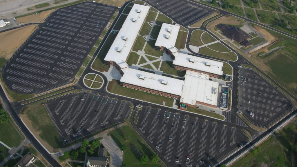 Fort Knox covers 109,000 acres in three counties of Kentucky. The 2018 population figures are 4,769 active duty soldiers, 2,501 Army Reserve soldiers, 6,825 civilian workers, and 6, 841 dependents living on post. It has a permanent population of just over 12,000 and a daytime working population of about 21,000. Like all Army posts, Fort Knox has a hospital, fire department, military police patrolling, a large post exchange, and a large commissary. Fort Knox also has four fitness centers/gyms, one has an indoor pool, a PGA certified 18-hole golf course, a bowling alley, and several tennis/ basketball courts and baseball/softball fields. The Fort Knox Education Center has five schools conducting evening and online classes, including the University of Louisville.