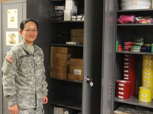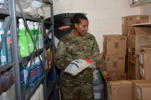 92Y Supply Sergeant Jerliz Meadows shows her supply room in competing for the Supply Excellence Award.