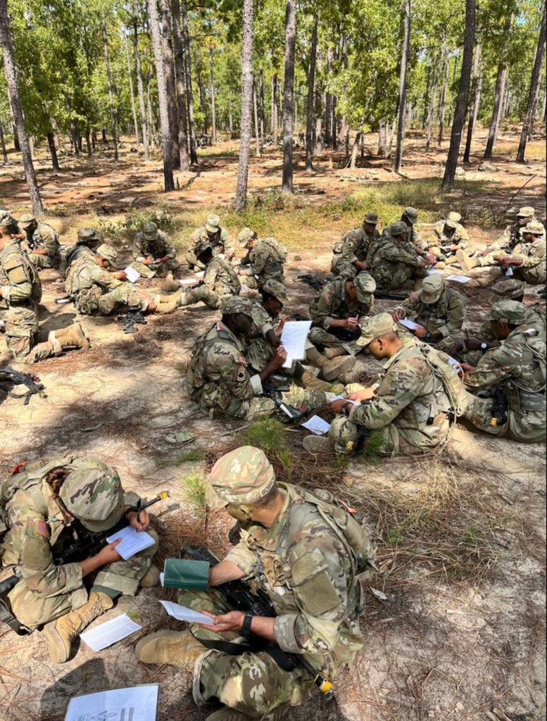 The Fighting Falcons of Delta Company underwent their second Field Training Exercise (FTX), known as the Anvil. The first day consisted of rucking 7.8 miles from the Company to the Area of Operation (AO), where they received various instruction blocks. The topics taught were Indirect Fire, Buddy Team Live Fire, Radios, Reporting (SALUTE and SPOT reports), and Evacuating Causalities. Next, they mastered their navigation skills at the land navigation course, ST LO. By the conclusion of the FTX, they sharpened their tactical battle skills for their final FTX, known as the Forge.