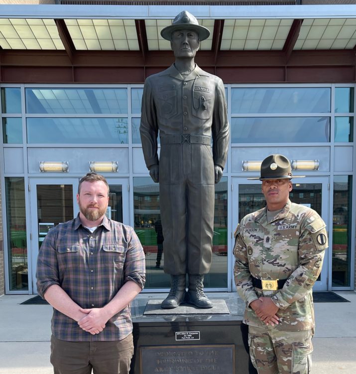 Alex Hollings and Command Sergeant Major (CSM) Ricky G. Jackson the Commandant of the US Army Drill Sergeant Academy. Out of uniform CSM Jackson can honestly be called Doctor Jackson, because he has a PhD in Behavioral Health Management.