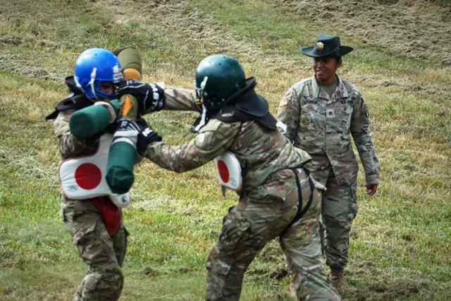After qualifying with their rifle they move to the close combat course, i.e., fire and maneuver, which starts with group instruction, then one on one.