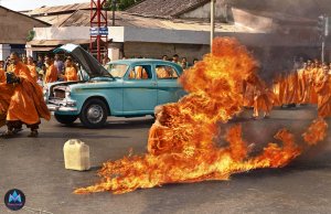Then in January 1963 the South Vietnamese were soundly defeated by the Viet Cong in a battle 40 miles southwest of Saigon in the Mekong Delta. General Harkins called it a victory because the Viet Cong left the area. They did, after inflicting around 200 casualties on the South Vietnamese Army, killing three American advisors, and shooting down five helicopters. Henry Cabot Lodge, Jr was appointed ambassador to South Vietnam replacing Ambassador Nolting. Viet Minh infiltration from the north increased and tensions within South Vietnam increased. South Vietnam government troops opened fire on a group of protesting monks killing nine. The Diem government started raiding Buddhist monasteries. Seventy percent of South Vietnam people were Buddha’s, but Diem was Catholic. Finally a Buddhist monk burned himself to death at a busy intersection in Saigon. It was captured on film and published worldwide.