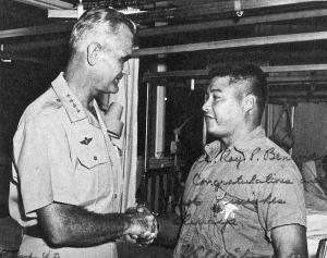 After being stabilized in Vietnam, Roy Benavidez was moved to the Army Medical Center at Fort Sam Houston, with over thirty wounds. While he was there, General William C. Westmoreland, the Chief of Staff of the Army, flew to Fort Sam and awarded Roy the Distinguished Service Cross.