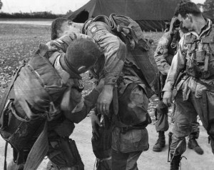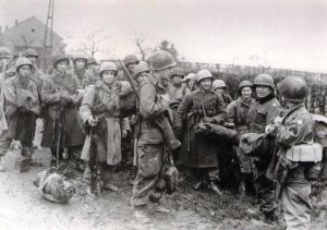 John Toland wrote in “Battle”, “That evening, the men of these two airborne divisions were enjoying the wine and women of Reims, France. Pfc. Edward Peniche, a native of Yucatan, Mexico, was sitting at a bar with a group of 101st men. “Throw a beer at that table, Peniche,” a buddy suggested, nodding at a group wearing the “AA” patch of the 82nd. “AA—All-American crumbs!” Peniche obliged, the can hit a big 82nd man. He picked it up and walked over to Peniche. “Well, who threw it?” A French girl pointed at Peniche. “It just fell out of his hand,” Peniche’s buddy explained. The 82nd man hit Peniche, and the riot began. Soon the whistles were blowing, but not primarily to stop this latest skirmish between the two rival divisions. “Okay, 101, back to Mourmelon!” shouted an MP. “Trucks are outside!” The men of the 82nd were also ordered to their camp at Suippes. All over Reims men were being dragged from boites, bistros, and bordellos. Some dead drunk, some still fighting, others not quite dressed, they were thrown into trucks and hustled home to camp. What was up? Where were they going? Everyone had a different idea: a new jump; rest camp in the south of France; back to England. But they were going somewhere, and the brass was in a terrific heat to get them there”.