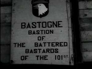 About 11:30 that morning, Sergeant Oswald Butler of the 327th Glider Infantry Regiment of the 101st, saw four German soldiers walking toward him carrying a pole with a bed sheet attached. They requested to see the Commanding General. They had two letters, one in German and one in English, from the German Commander to the American Commander requesting that the Americans surrender. They were blind folded and escorted to the 327th Command Post (CP), where the 327th commander, Colonel Joseph Harper called, then escorted them to the Division CP. BG McAuliffe was asleep. Colonel Ned Moore, the 101st Chief of Staff shook the General awake and told him that Harper was on the way with German officers and a letter. When BG McAuliffe came out of the room yawning, he asked; “What’s on the paper Ned?” “They want us to surrender.” McAuliffe glanced at the papers, laughed and said “Aw, nuts.” He dropped the papers, walked out, got in his jeep and went to visit troops who had just wiped out a German roadblock. When he returned, the German officers were demanding an answer to their letter. BG McAuliffe sat down with a pencil and said; “What the hell should I tell them?” The Division Operations officer, Colonel Kinnard said; “That first remark of yours would be hard to beat, General.” “What did I say?” “You said, ‘Nuts’.” BG McAuliffe’s letter read; “To the German Commander: Nuts! — The American Commander. Colonel Harper delivered the letter and escorted the German officers back to their lines. They didn’t know what it meant. Colonel Harper replied; “If you don’t know what ‘Nuts’ means, in plain English it’s the same as ‘Go to Hell’.” Word of the answer spread quickly throughout the division, and morale shot up among the surrounded 101st, who came to be known as “The Battered Bastards of Bastogne.”